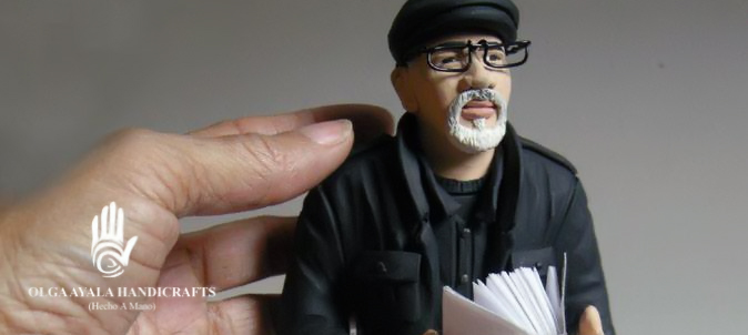 When book author Manuel A. Melendez commissioned me to create his mini-portrait sculpt, his request was that I portray him standing with a book in hands, dressed as in a provided photo, and that, somehow, the end result would serve in a functional capacity. He wanted it to be able to hold his business cards.